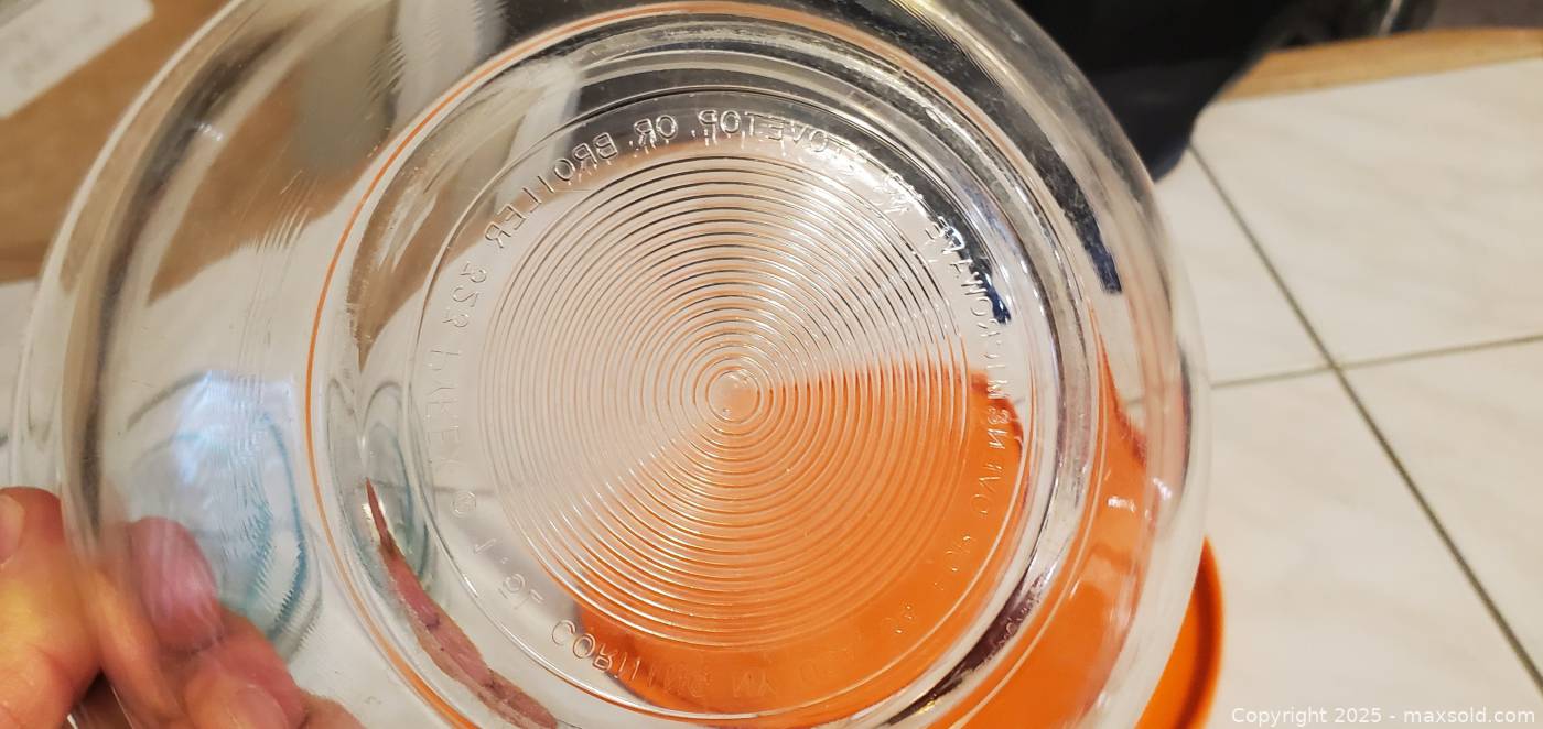 Pyrex clear mixing bowls with orange lid | Maxsold