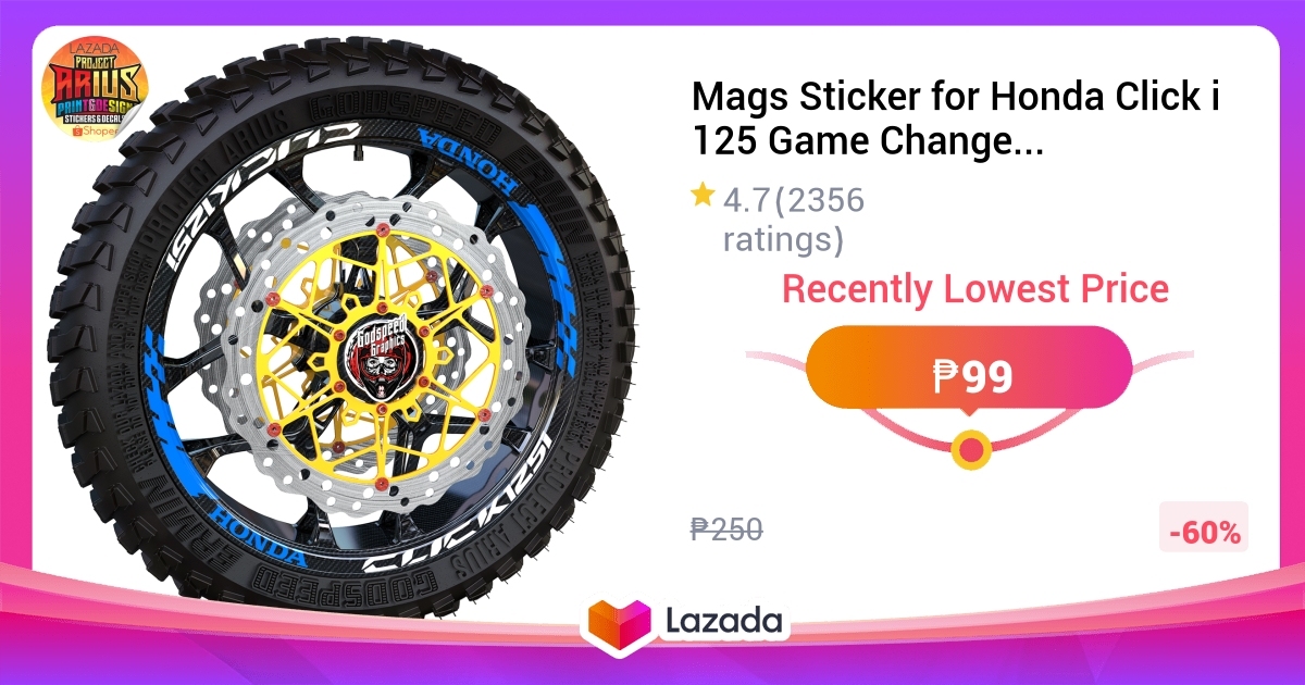 HONDA CLICK 125i MAGS STICKER GAME CHANGER SET FOR 2 TIRES | Lazada PH