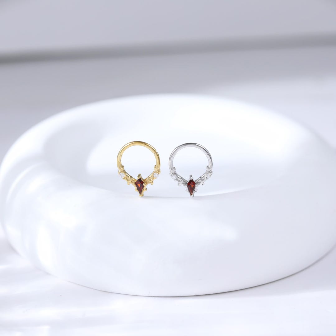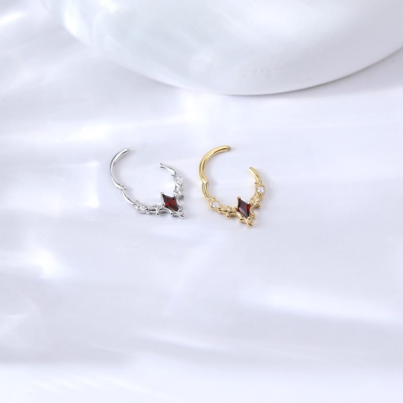 Garnet Moissanite Flower Hoop Earring • Gemstone Petal Inspired Septum ...