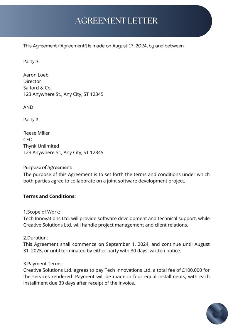 Client Agreement Letter Template | Ready-to-use, Printable, Editable ...