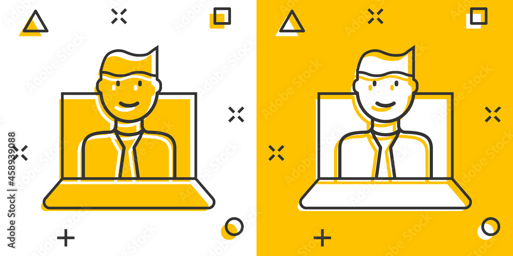 People With Laptop Computer Icon In Comic Style Pc User Cartoon Vector ...