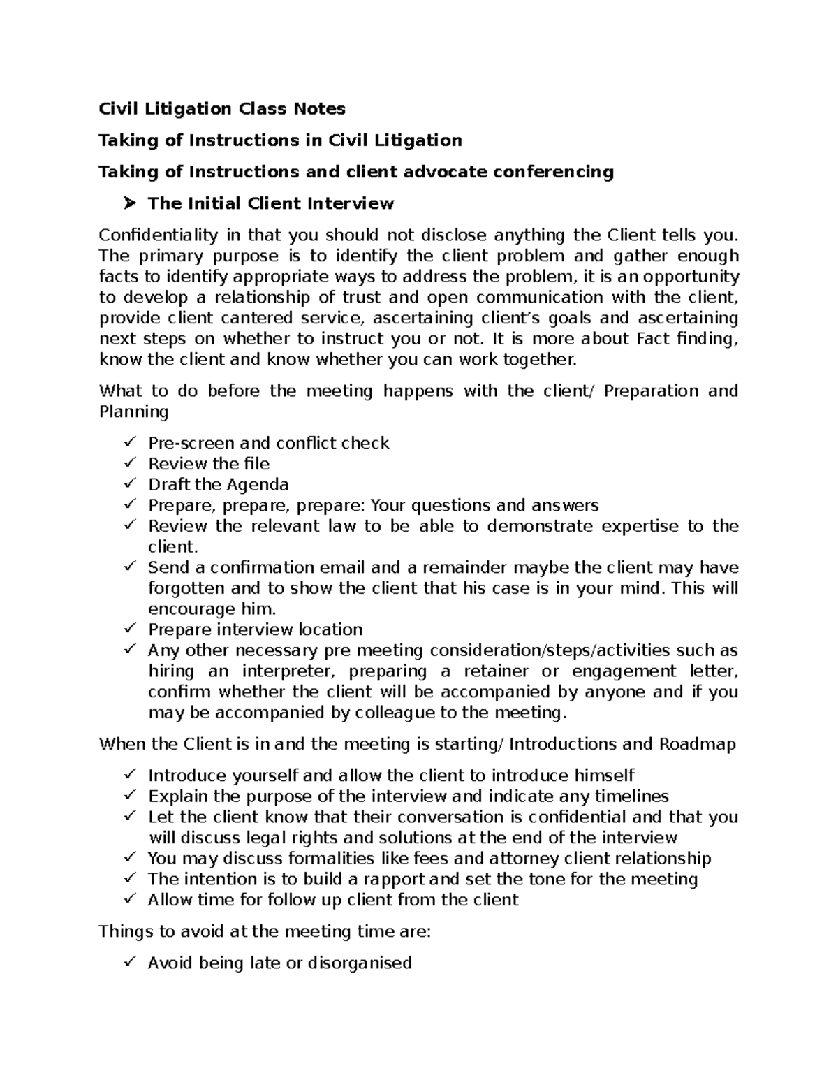 Civil Litigation Class Notes (CLN 2025): Client Interview & Legal ...