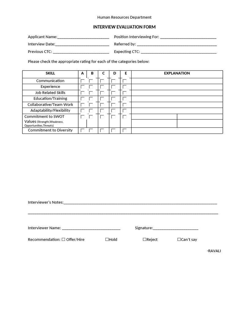 Free Interview Evaluation Form - Word - Google Docs