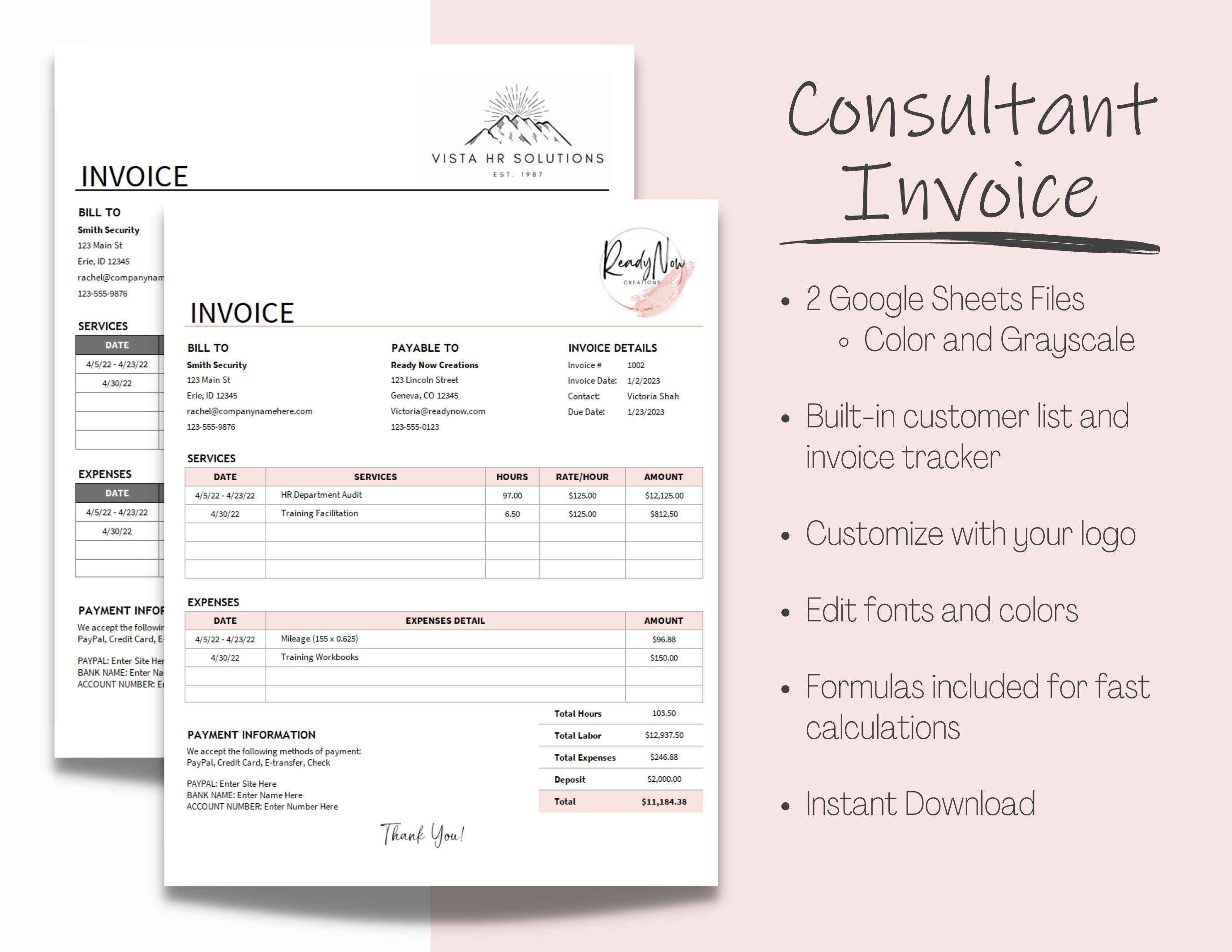 Consultant Client Invoice With Built-in Customer List and Invoice ...