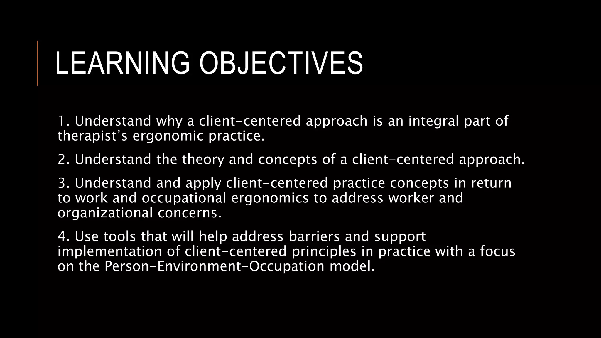 A CLIENT-CENTERED FRAMEWORK FOR THERAPIST IN ERGONOMICS final 52 slides ...