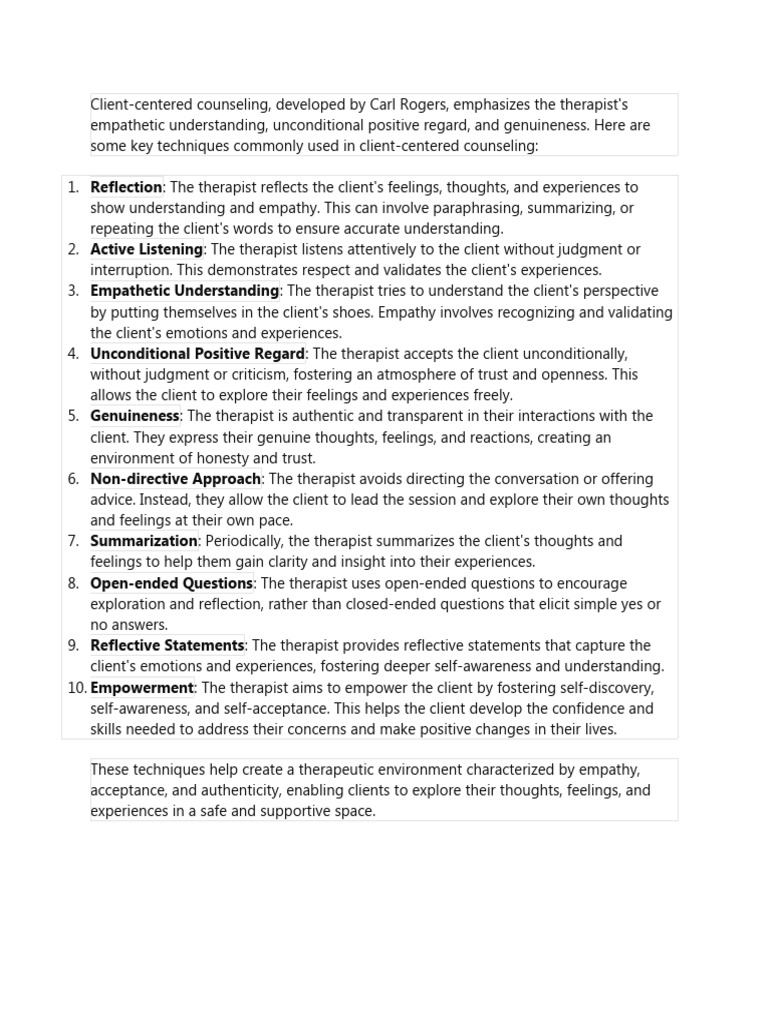 Client Centered Techniques | PDF | Empathy | Cognition