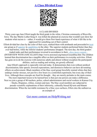 A Class Divided - Jane Elliot - Docsity