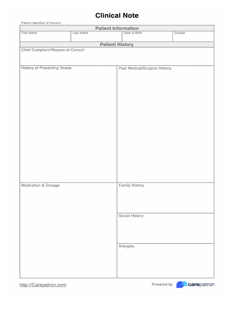 6396a09b2721b353a68bf320 - Clinical Note Template | PDF