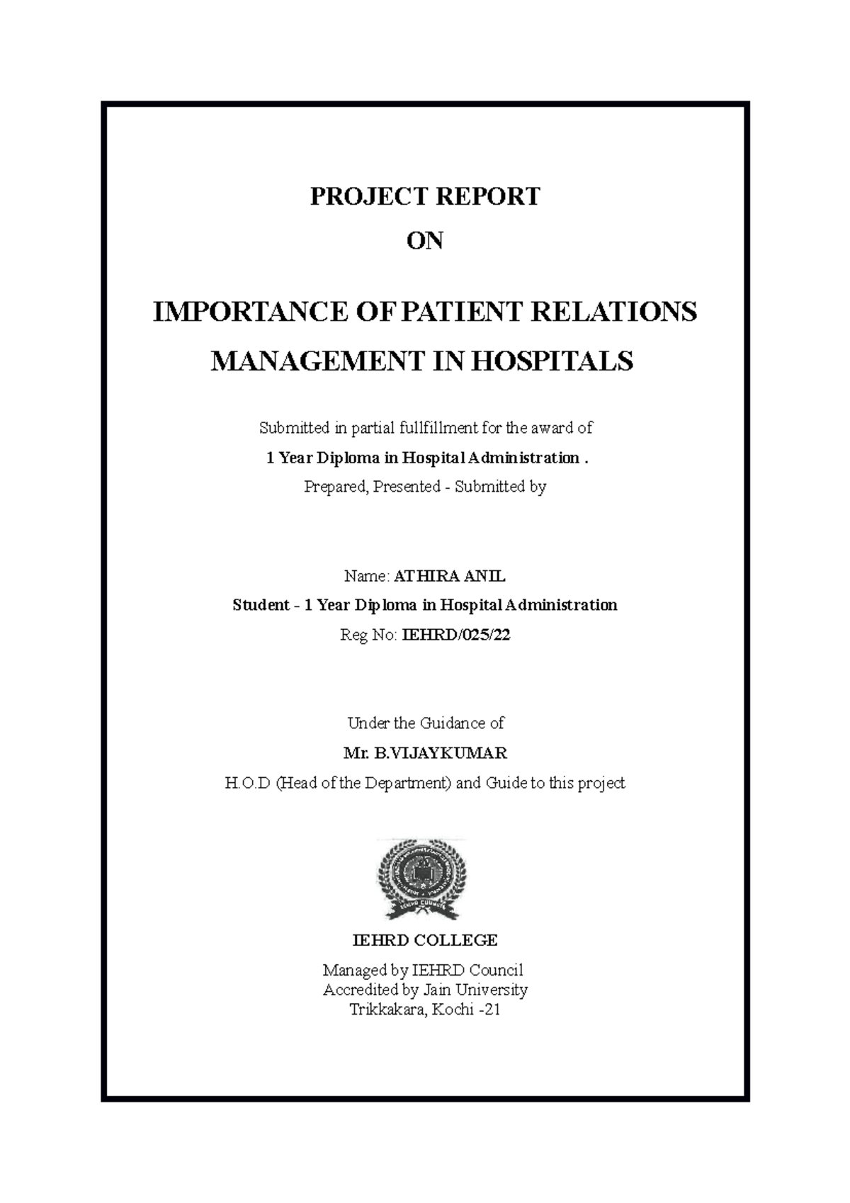 Projexttttt - project - PROJECT REPORT ON IMPORTANCE OF PATIENT ...
