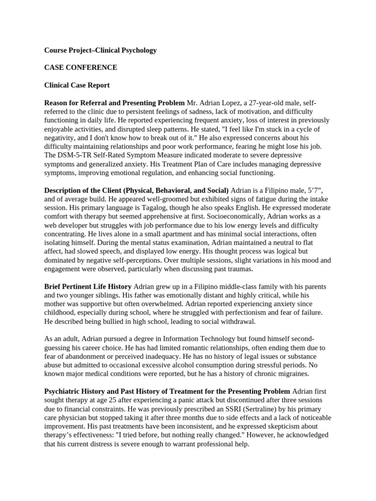 Clinical Case Report Course Project | PDF | Anxiety | Major Depressive ...