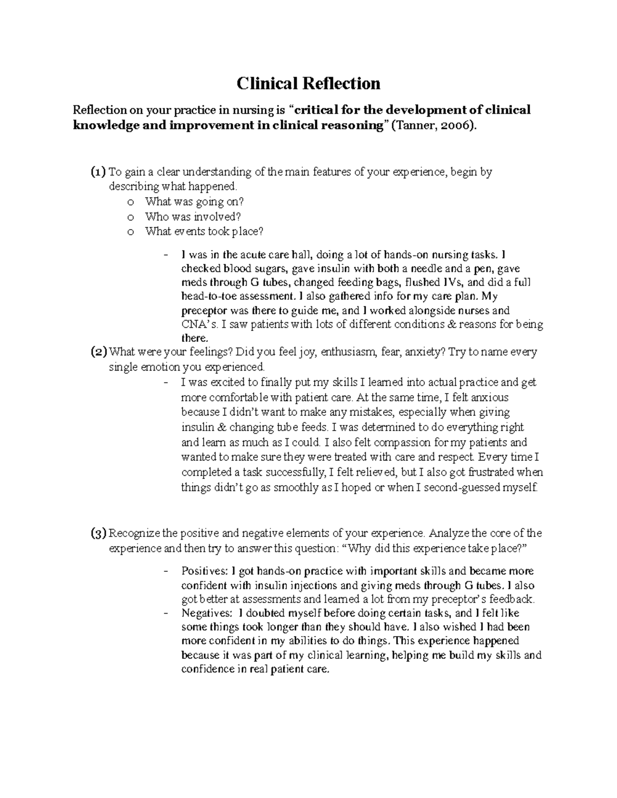 Clinical Self-Reflection in Nursing: Enhancing Patient Care | Course Hero