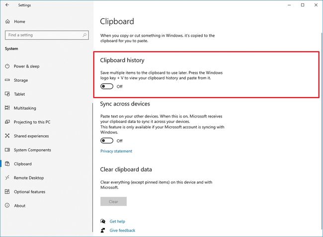 How to enable or turn off clipboard history and syncing in Windows 10