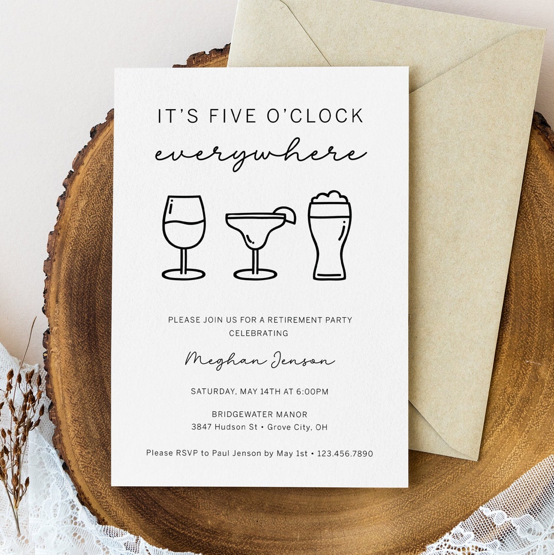 It's Five O'clock Everywhere Retirement Party Invitation Template ...