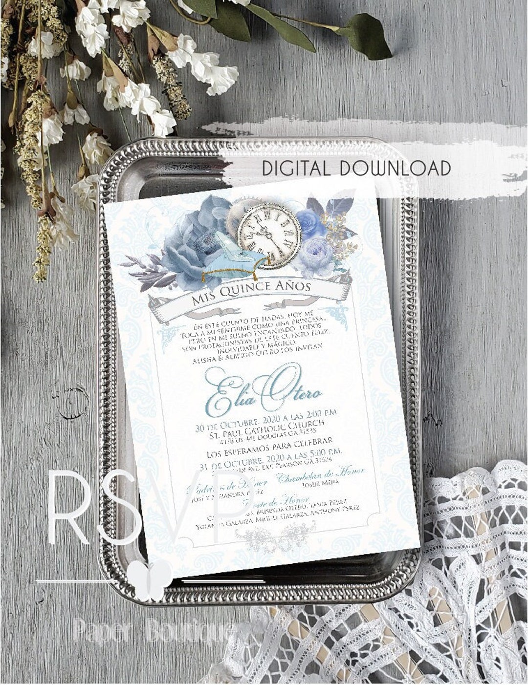Quinceanera Invitation Cinderella Clock Invitation Quinceanera Sweet ...