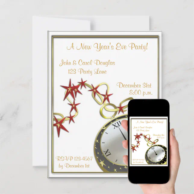 New Year's Eve Clock Invitation | Zazzle