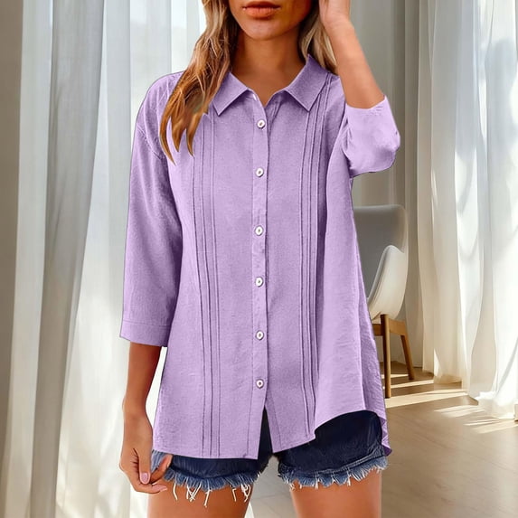 3/4 Sleeve Button Down Shirts For Women Spring Summer Fashion Collared ...