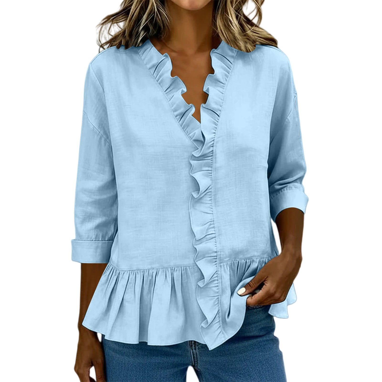 3/4 Sleeve Tops for Women Work Casual Office Spring Fall Basic Shirt ...