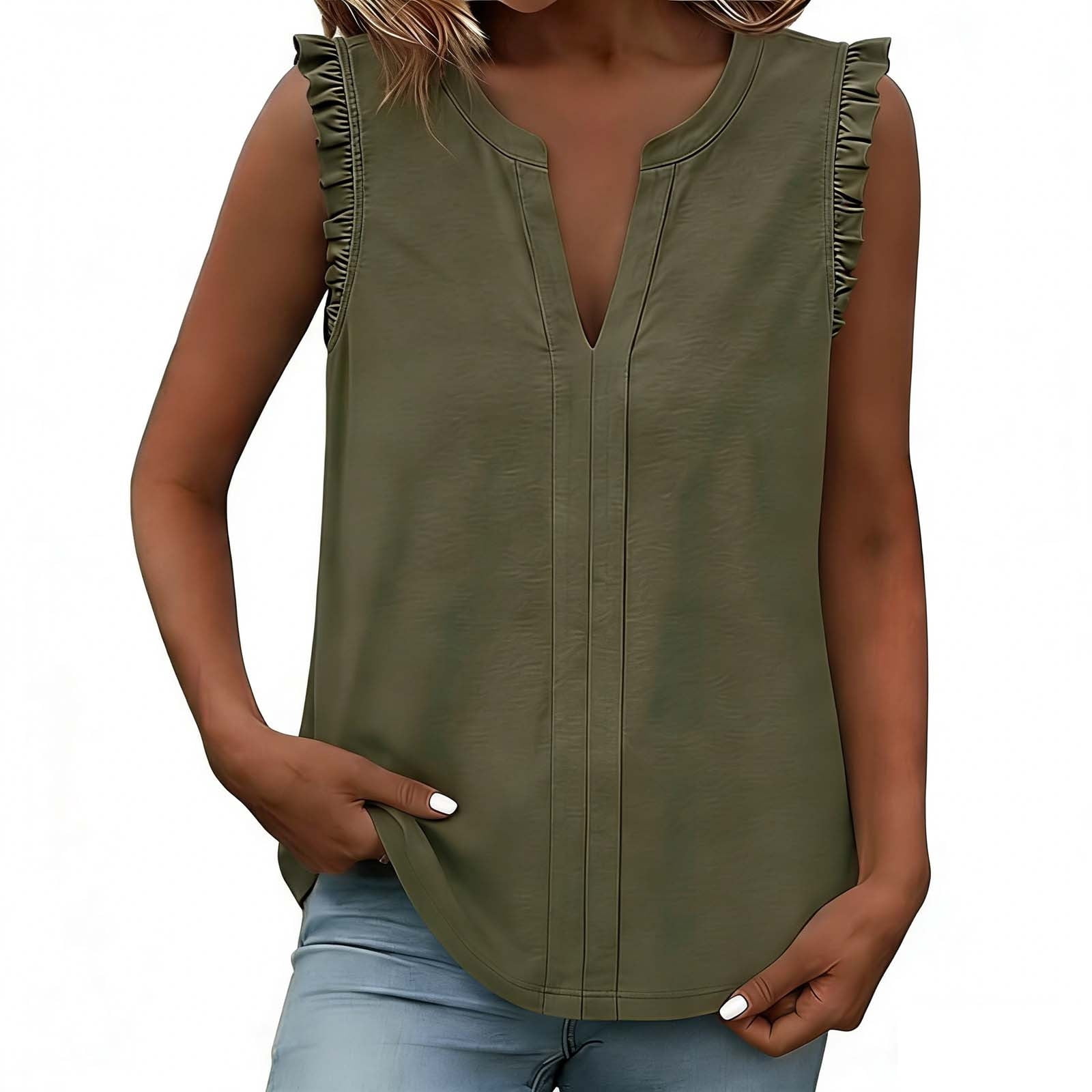BUIGTTKLOP Sleeveless Tops for Women Summer Dressy Tank Tops Cute V ...