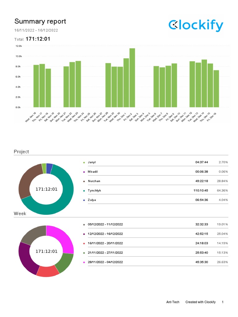Clockify Time Report Summary 16 11 2022-16 12 2022 | PDF