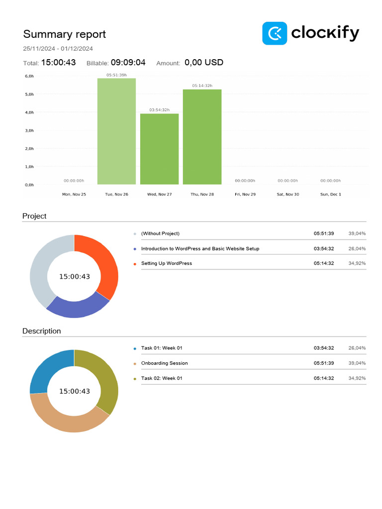 Clockify Time Report Summary 25 11 2024-01 12 2024 | PDF