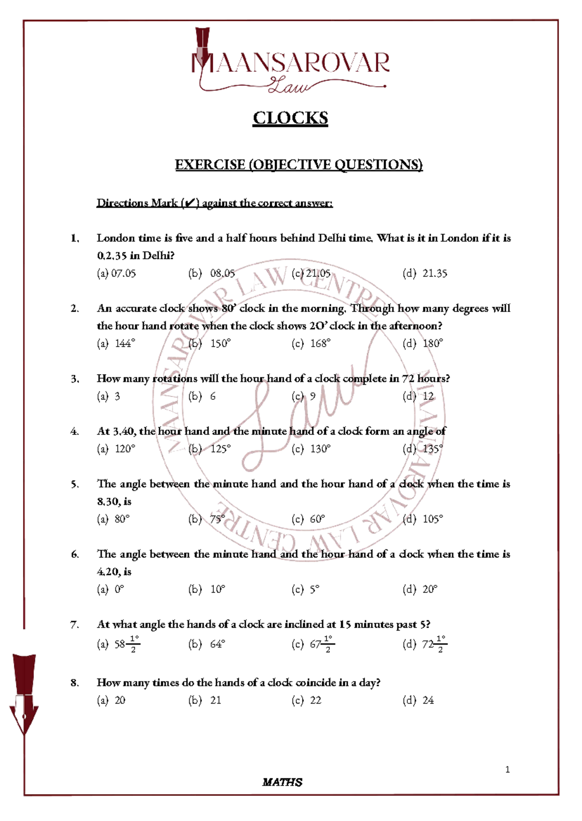Clock Aptitude - Clock Questions and Answers for SSC and Banking