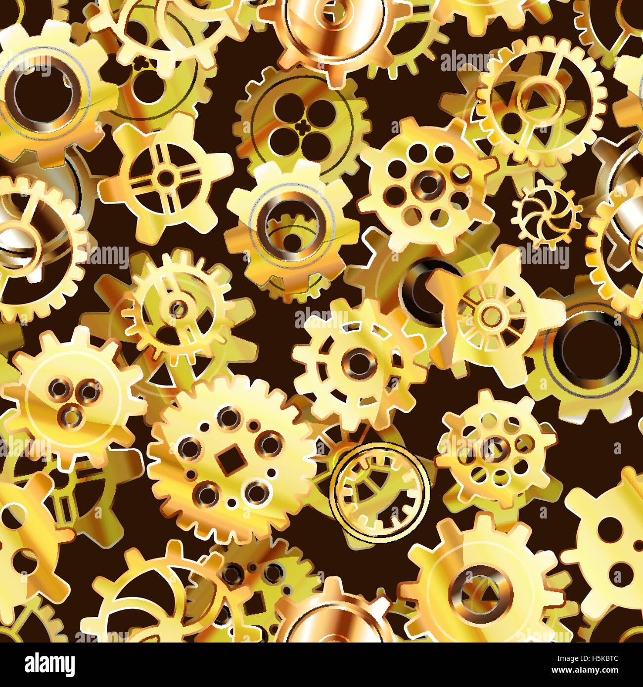 Clockwork mechanism seamless pattern with golden steampunk cogwheels ...