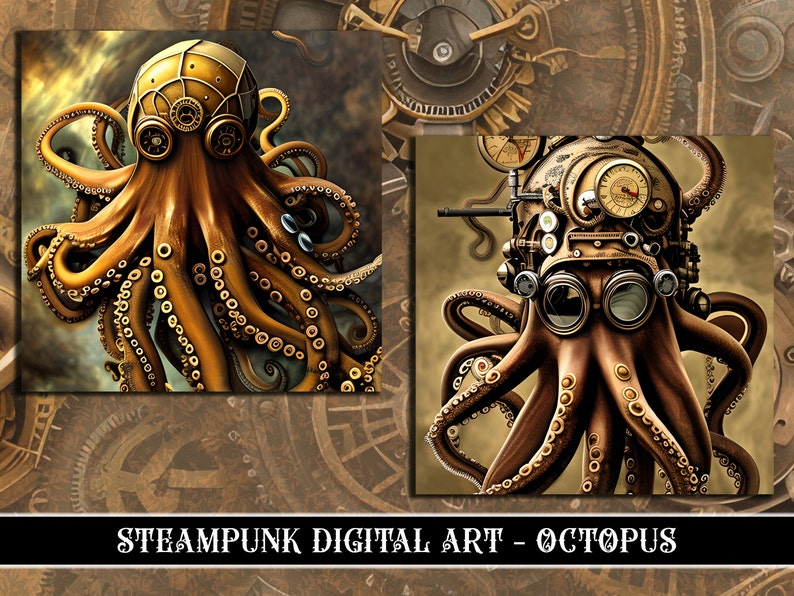 Steampunk Digital Bundle - Octopus Background | Unique and Authentic ...
