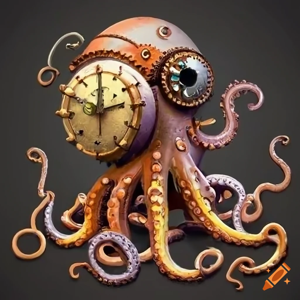 wonderful abstract A steampunk octopus, with intricate clockwork ...