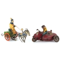 Two vintage tinplate clockwork vehicles comprising a horse drawn cart ...