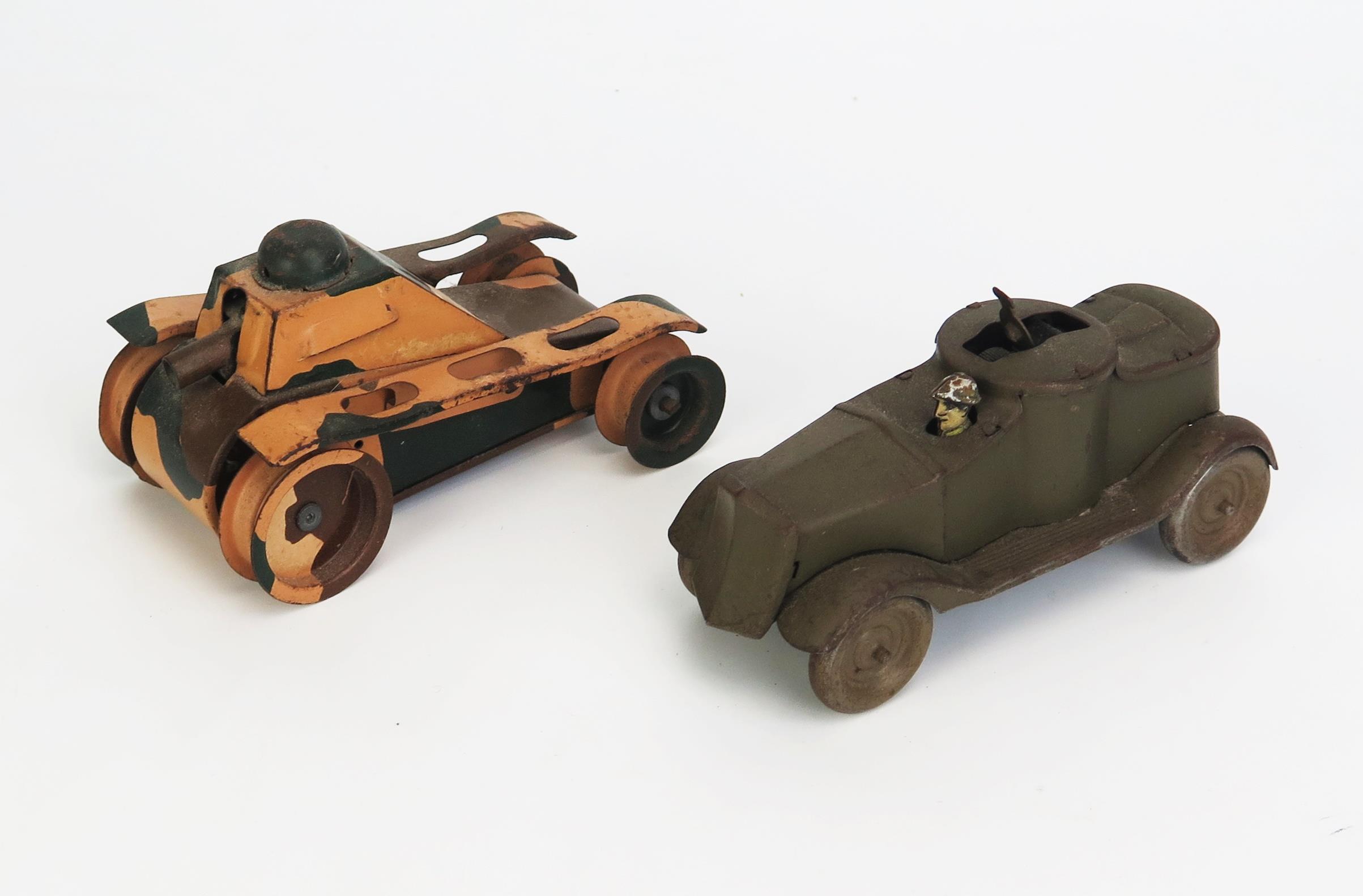 2 Tinplate Clockwork Military Vehicles - (1) pre-war armoured car ...