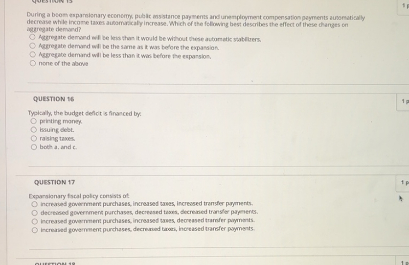 Solved: 1p During a boom expansionary economy, public assistance ...