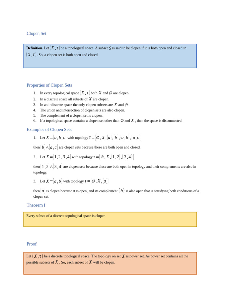 Clopen Set||Definition||Example||Every subset of a discrete topological ...