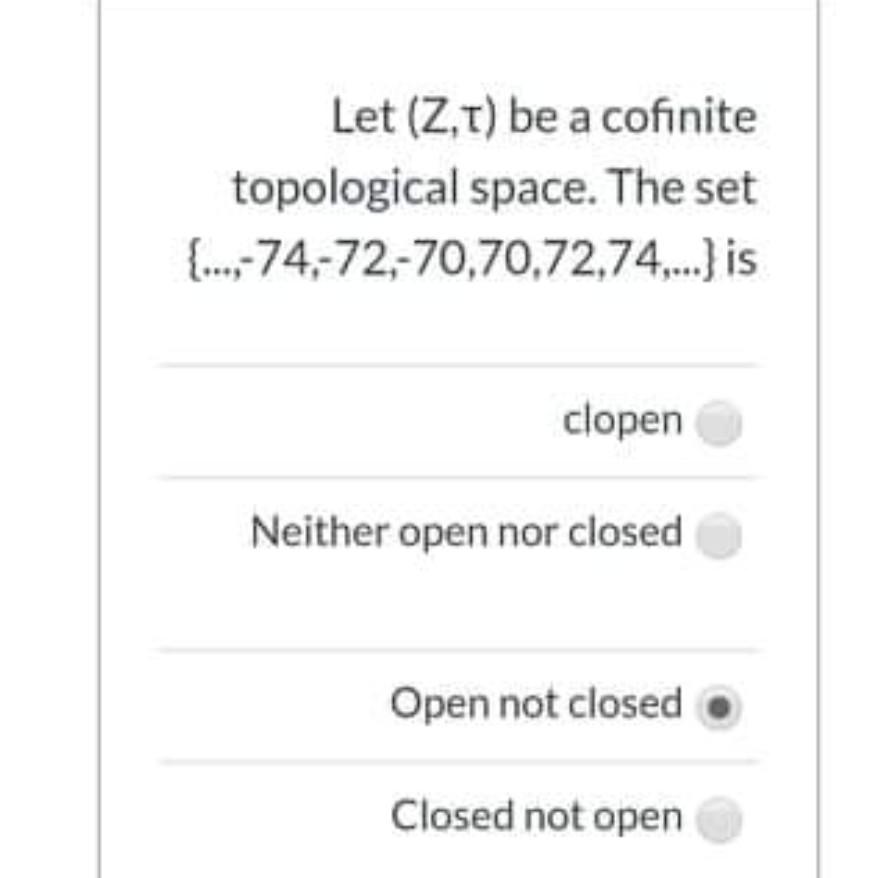 Solved Let (Z,t) be a cofinite topological space. The set | Chegg.com