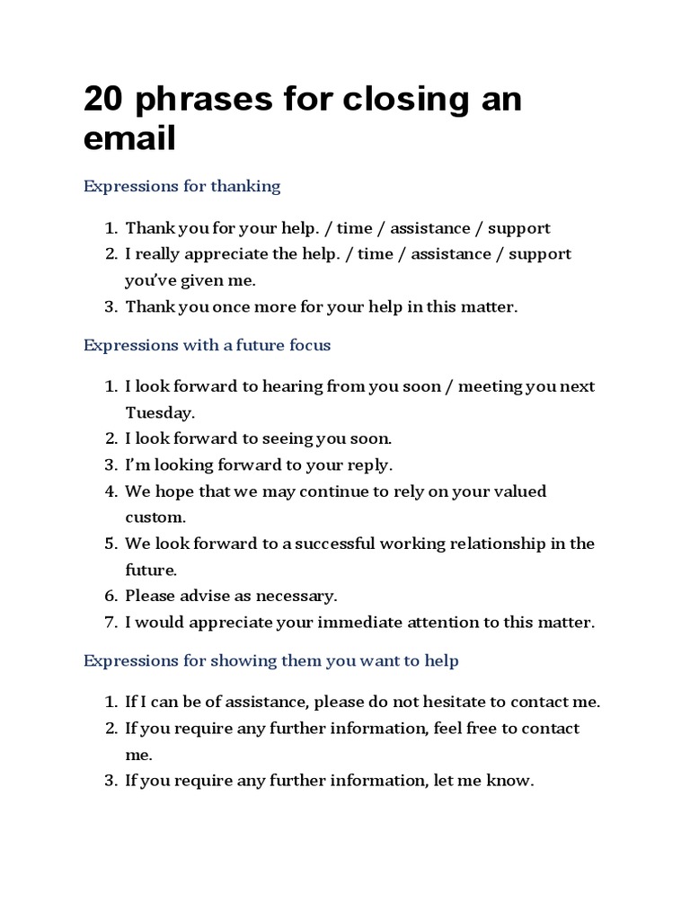 20 Phrases For Closing An Email | PDF