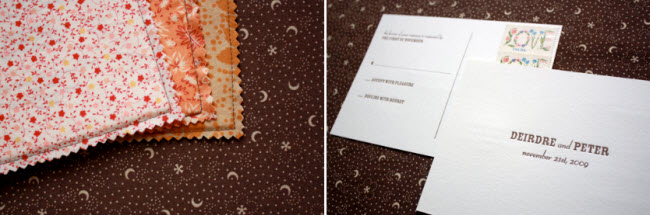 Lauren + Paul's Rustic Screen Printed Fabric Wedding Invitations