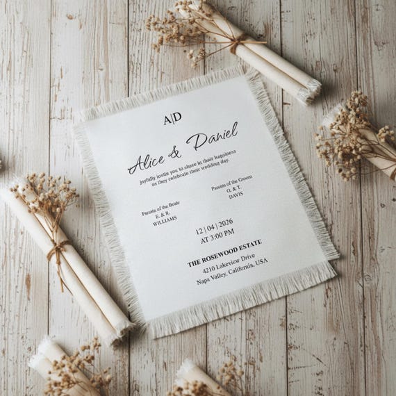 Fabric Invitation Frayed Edge Style, Handcrafted Linen Wedding Invite ...