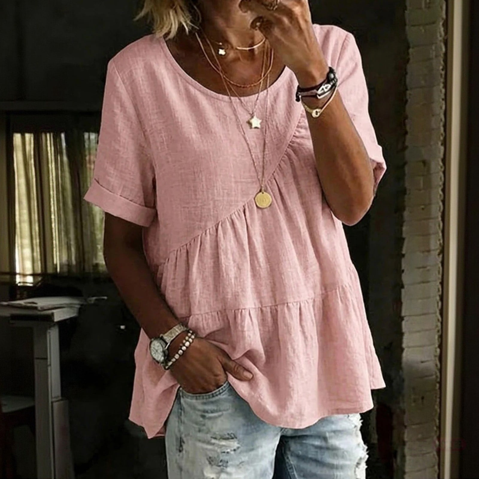 Seductiva Women's Summer Short Sleeve Linen Cotton Crew Neck Loose ...