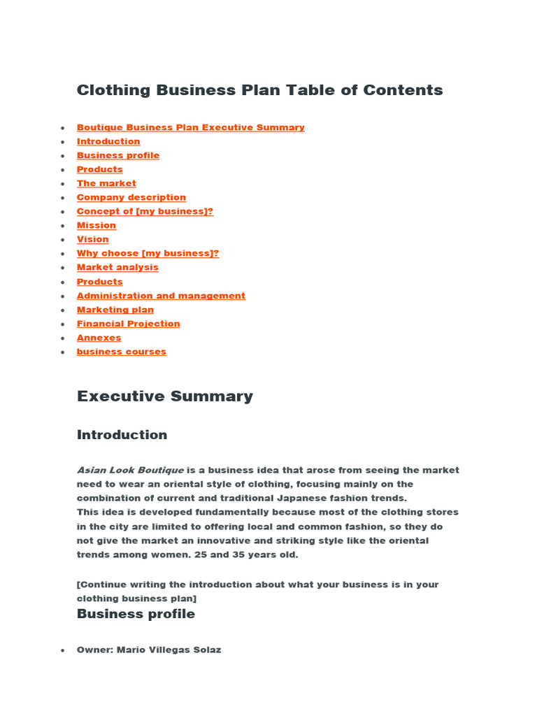Clothing Business Plan Index | PDF | Fashion | Clothing