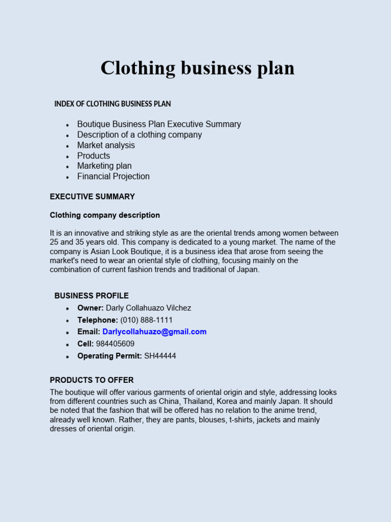 Example Of Clothing Business Plan Sample - PHDessay.com