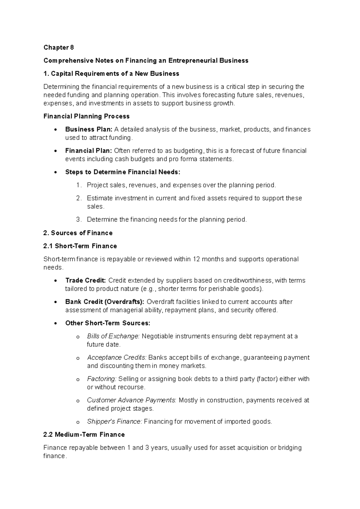 Chapter 8: Financing an Entrepreneurial Business - Comprehensive Notes ...