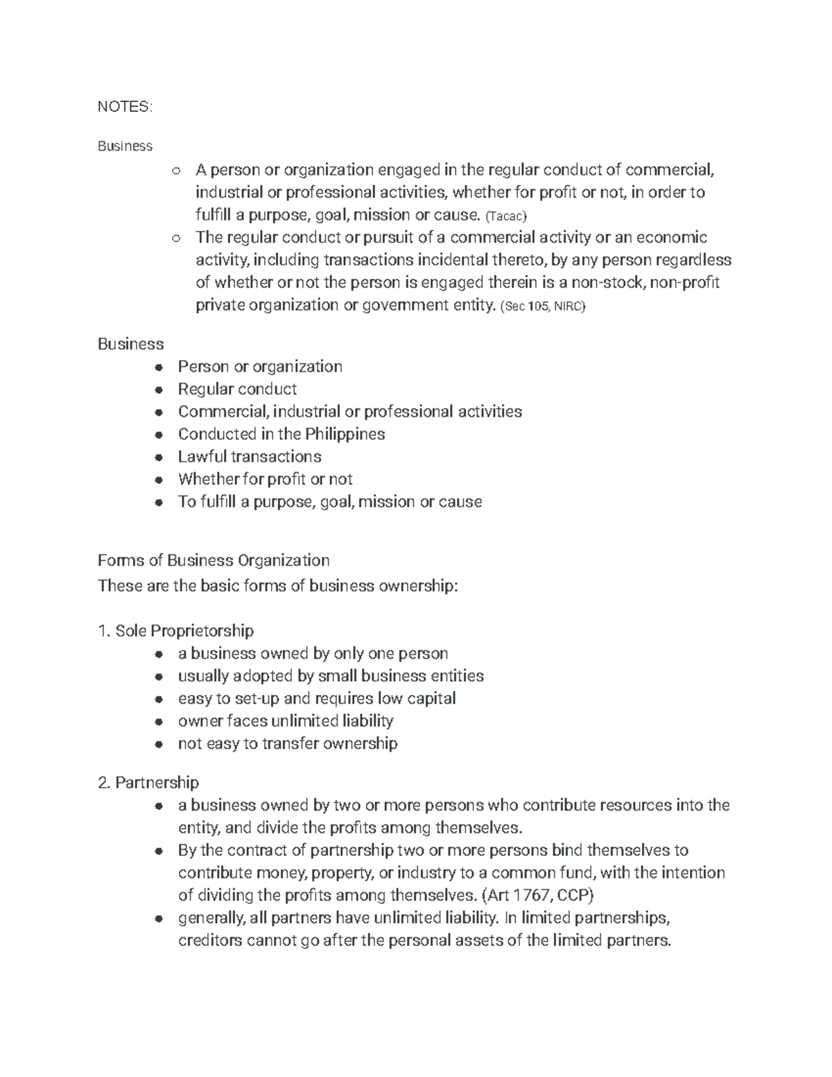 CTB 260116: Business Organization and Compliance Notes - Studocu