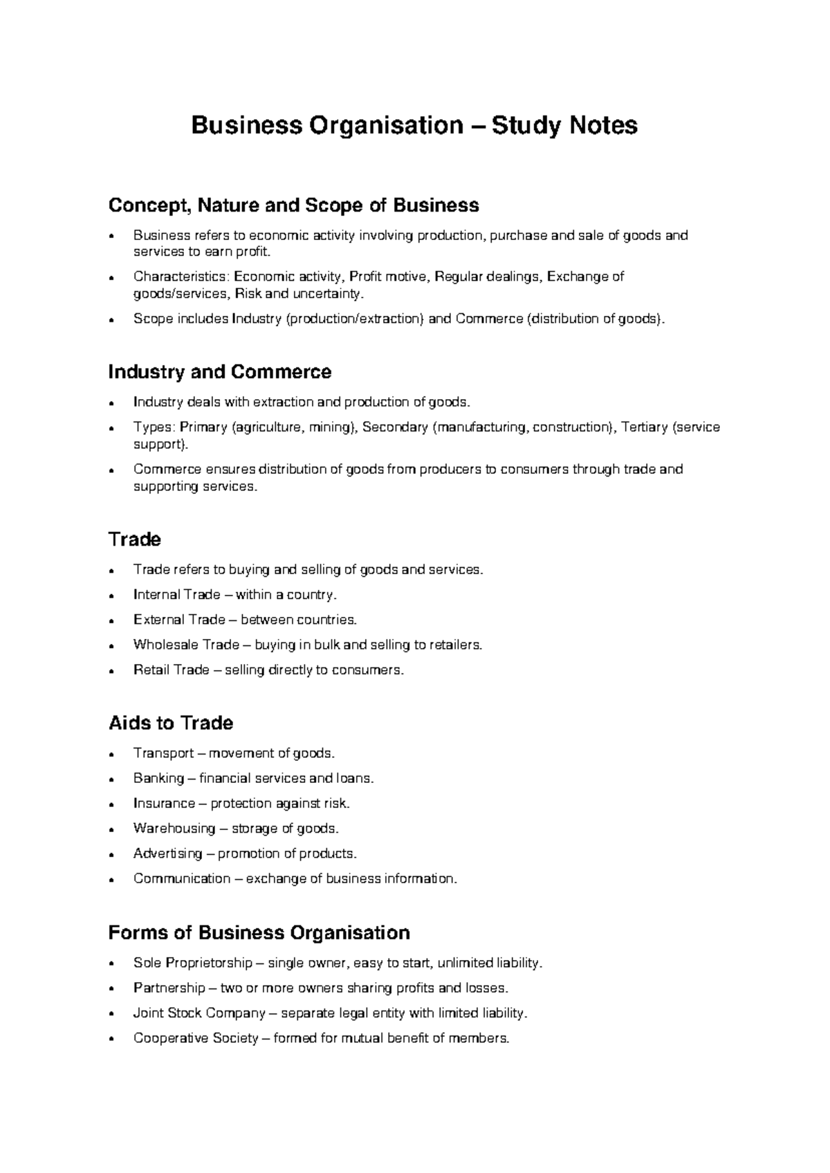 Business Organisation Study Notes: Concepts, Nature & Scope - Studocu