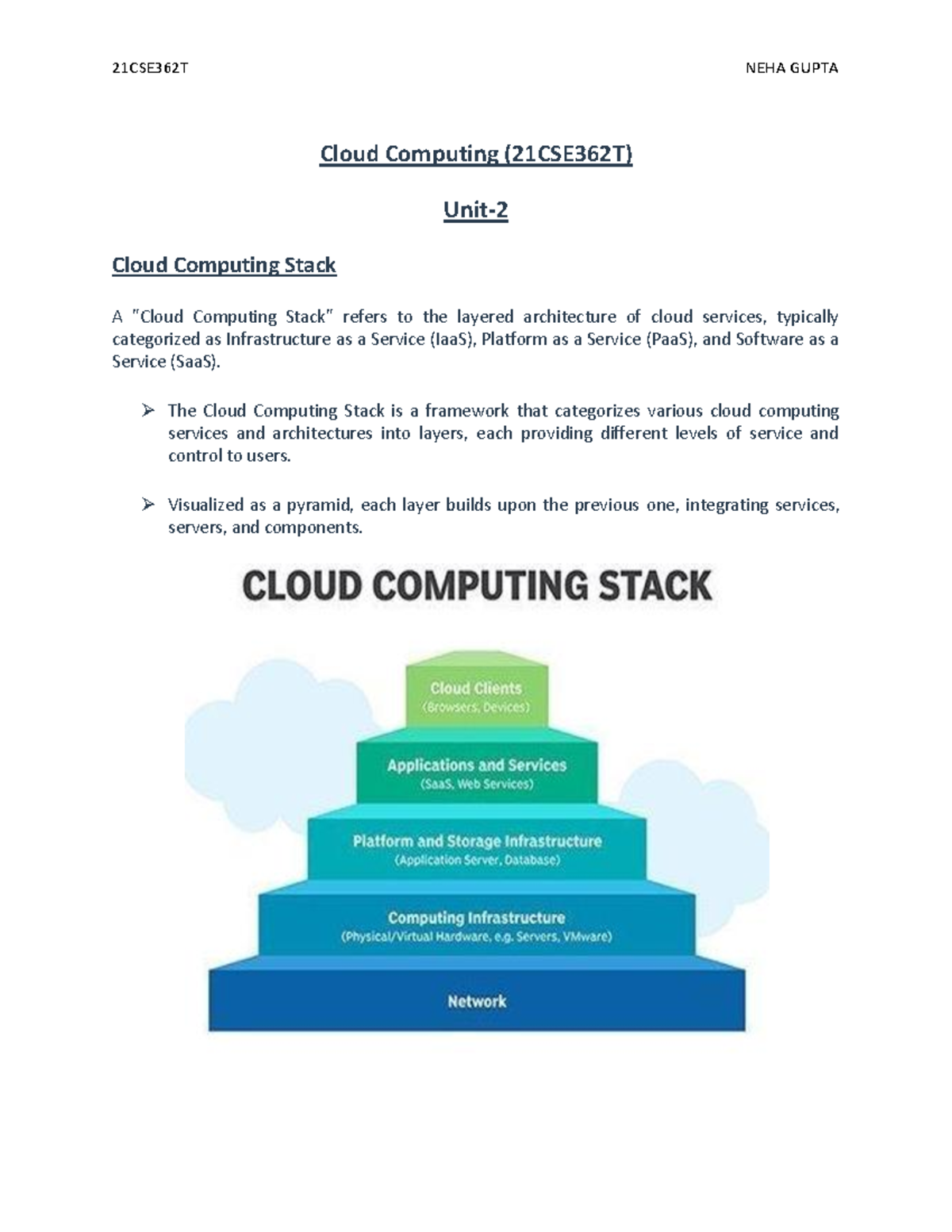 21CSE362T Cloud Computing Stack: IaaS, PaaS, SaaS Overview and Notes ...