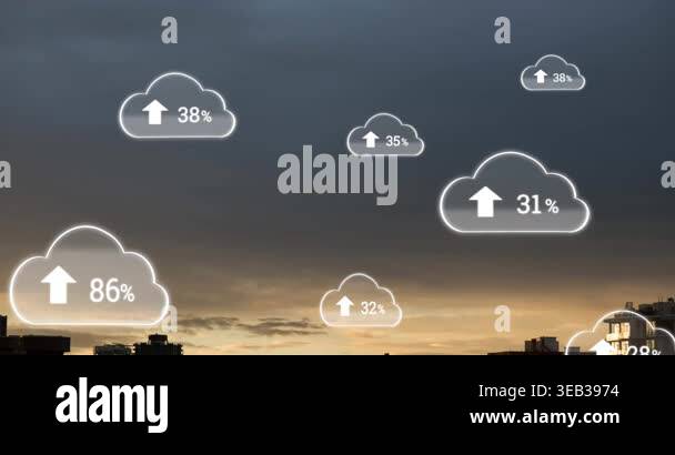 Animation of data processing over cloud icons with increasing ...