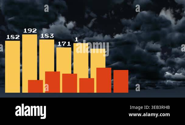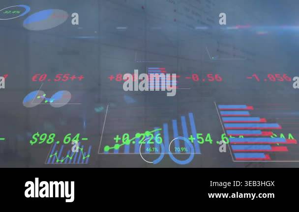 Animation of statistics and financial data processing over landscape ...