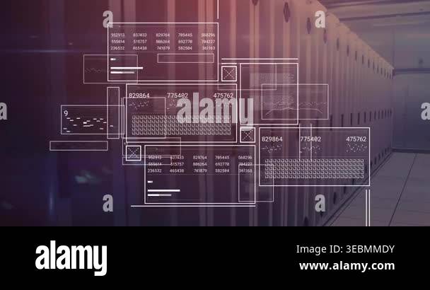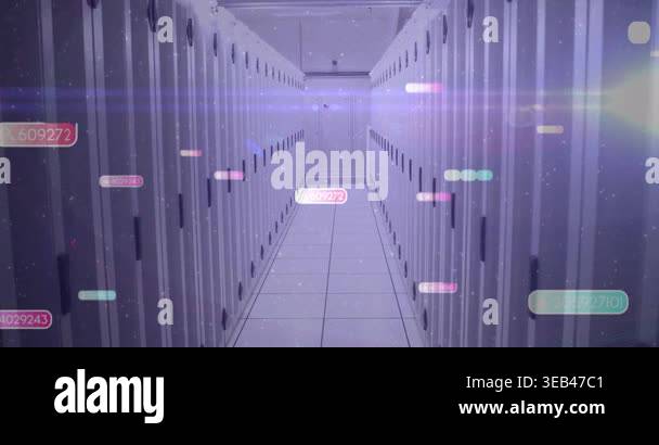Data processing animation over server racks in modern data center ...