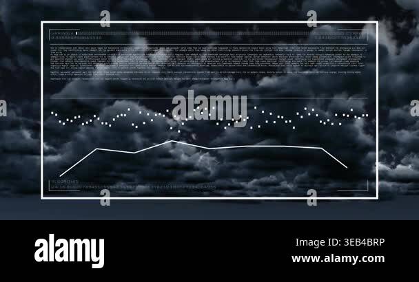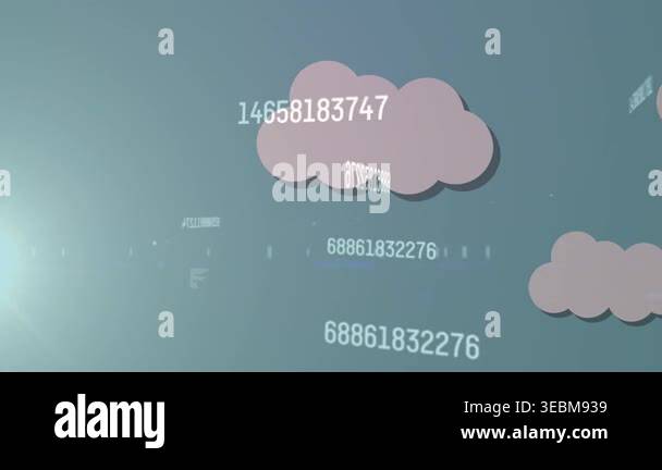 Animation of digital clouds, numbers and lights. Cloud computing, data ...