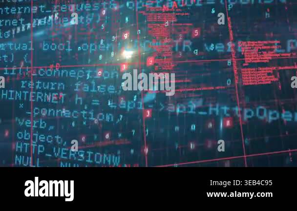 Animation of binary coding against computer servers in the sky ...