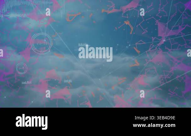Animation of network of connections over clouds in sky. Global cloud ...