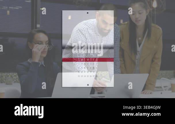 Animation of digital icons over business people using computers. Global ...